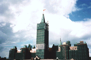 Scaffolding around the Peace Tower and the south facade of the Centre Block.
