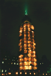 Spectacular night view of the Peace Tower during renovations.