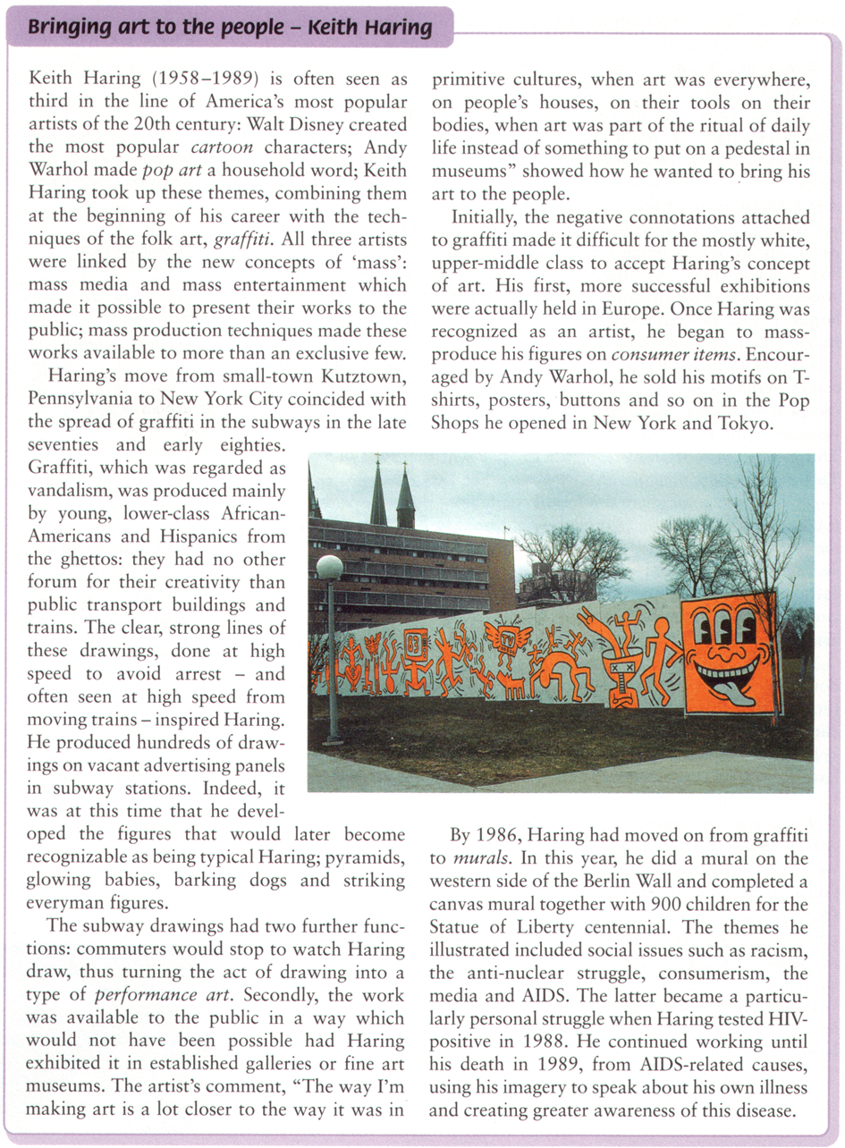 - English in Context (Cornelsen), page 52 text 2 (Graffiti - The Art of Vandalism) -> prepare the text, memorize the vocabulary, do page 55/2-5